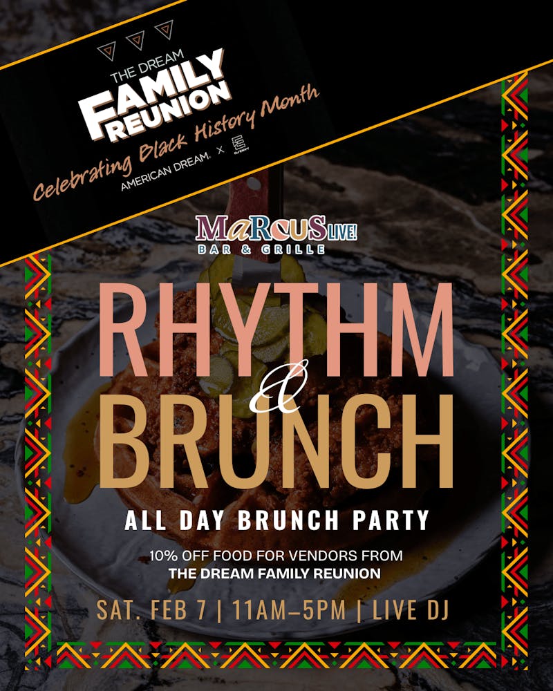 American Dream is celebrating Black History Month with a day of fun at The Dream Family Reunion, hosted by DJ Envy and co-host Loren LoRosa. We invite all attendees to join us for a brunch party featuring kitchen specials like Fish Fry & Waffle, the “Happy Feelings” Rum Punch, and The Marcus Experience, a three-tier fried chicken tower.
